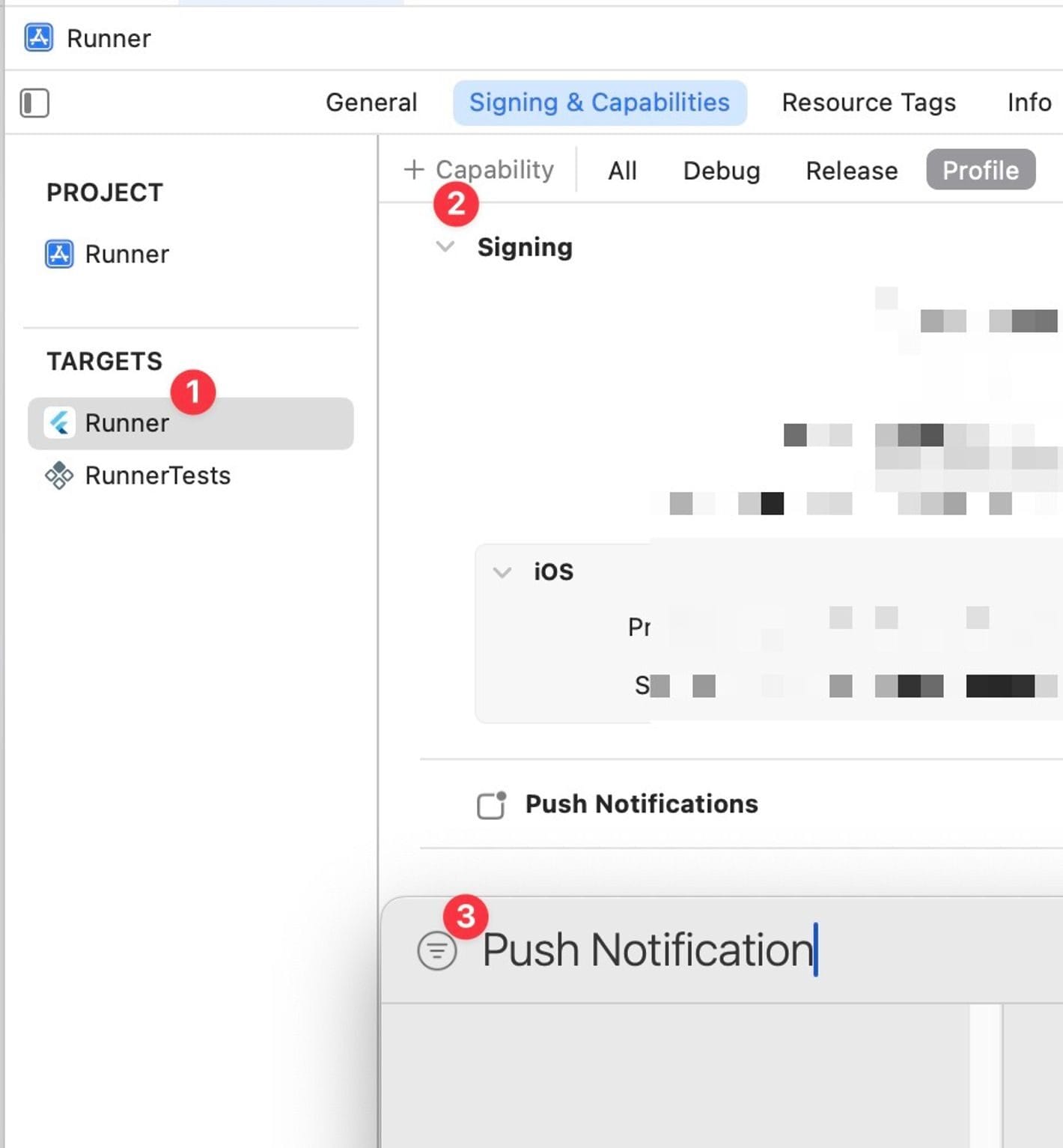 문제 해결을 위해 Xcode의 Signing & Capabilities 설정에서 명시적으로 Push Notifications 기능을 활성화해야 함. VS Code 환경을 기준으로 설명을 진행함.