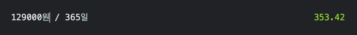 애플 경우 개발자 등록을 매년 해야하기 때문에, 년 129,000원 / 365일