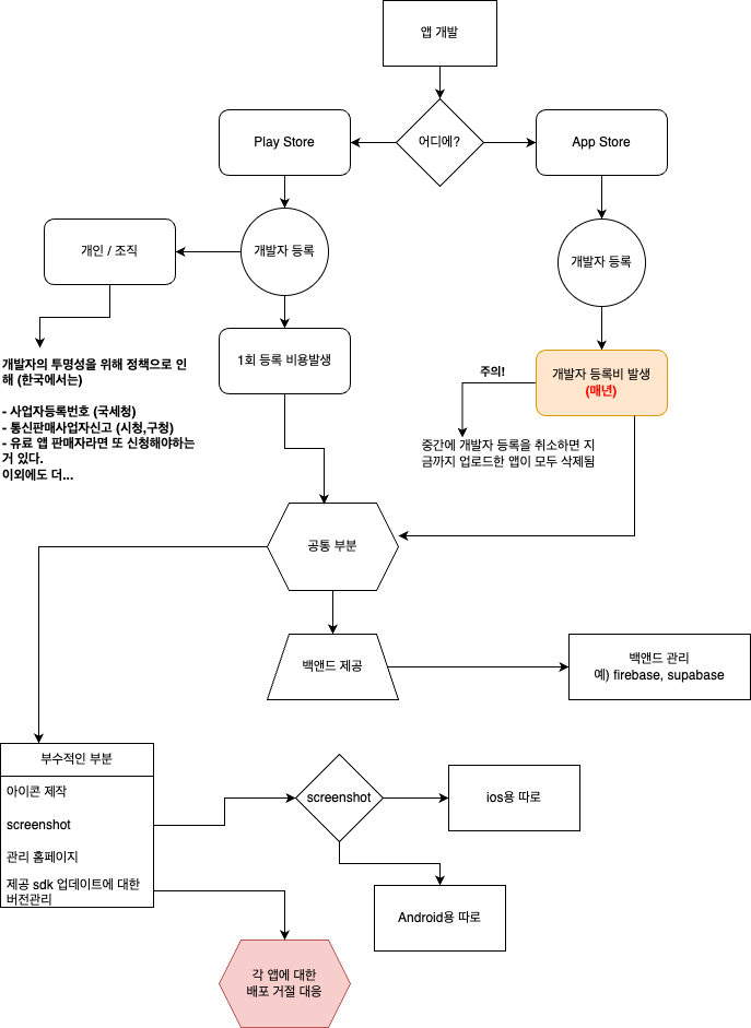 이러한 부수적인 부분이 1인 개발자 로써는 상당히 부담된다. 1인 개발자가 상당한 고수가 되기 까지 힘들게 여러 강의 보고 참고 하면서 만든 앱이 결국 각 스토어에 리젝되면 우울해진다?