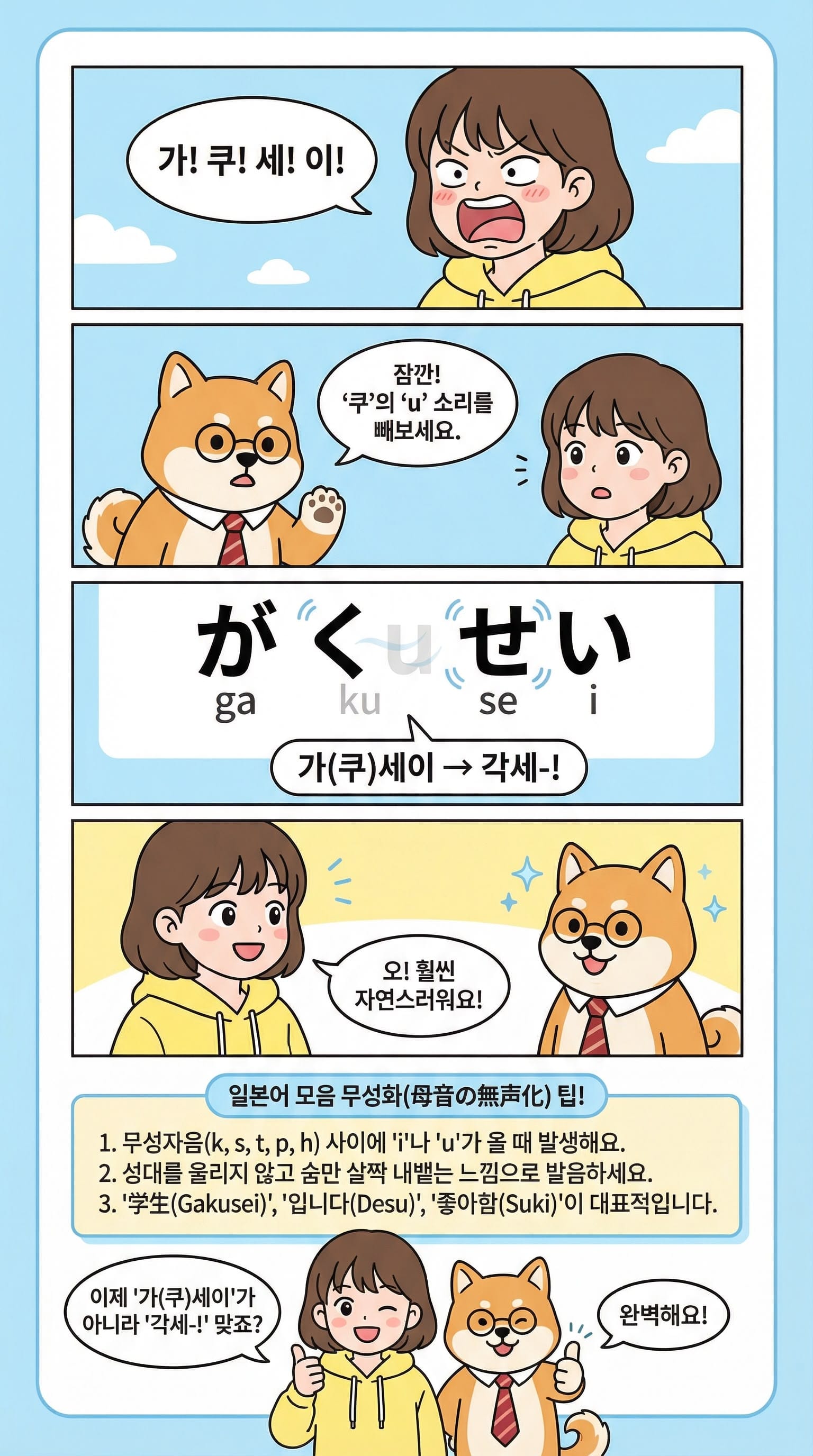 일본어 발음 레벨업: 모음 무성화(Devoicing) 규칙 (学生)