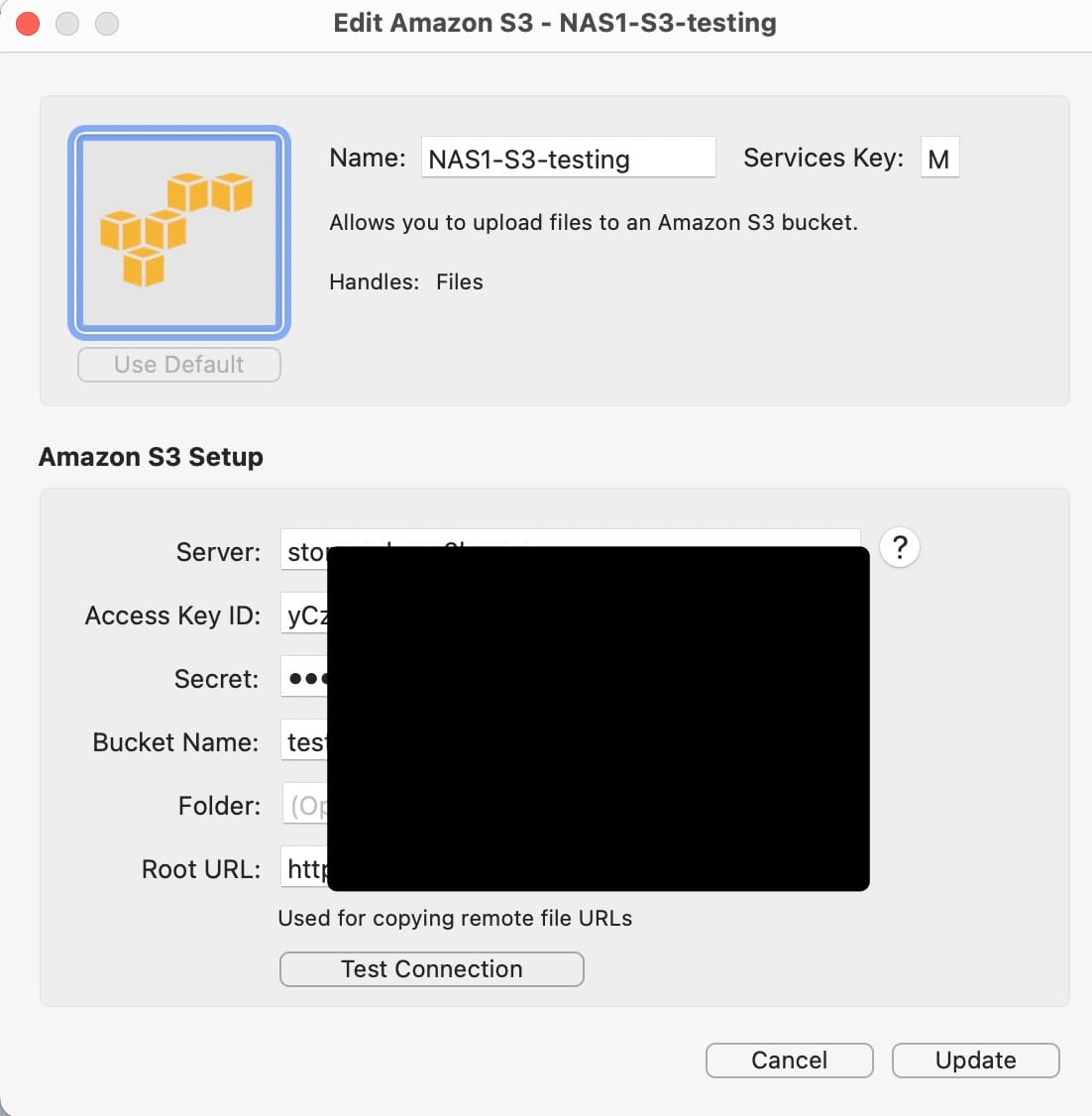 Test Connection 하고, 성공하면 이제 파일을 해당 아이콘에 떨어뜨리면 S3 서버로 저장되고 자동연결 링크가 생성됩니다. 그러면 해당 링크를 가지고 포스팅에 사용하거나 다른 활용을 하시면됩니다.