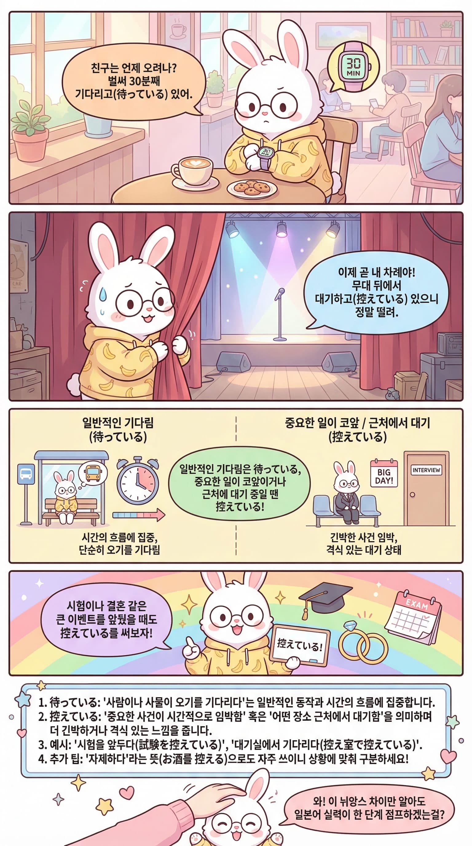 「待っている」 vs 「控えている」 차이, 5분 만에 완벽 정리
