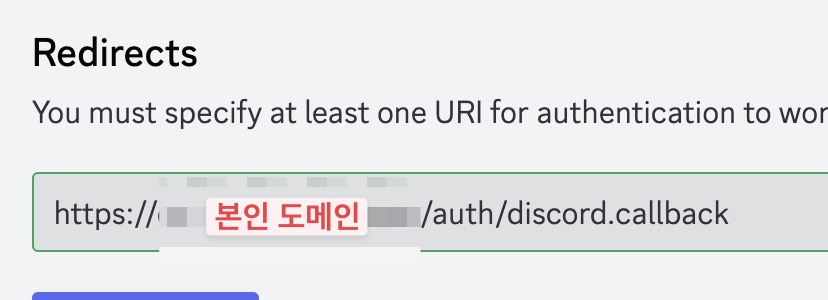 Redirects 부분에 https://본인도메인/auth/discord.callback