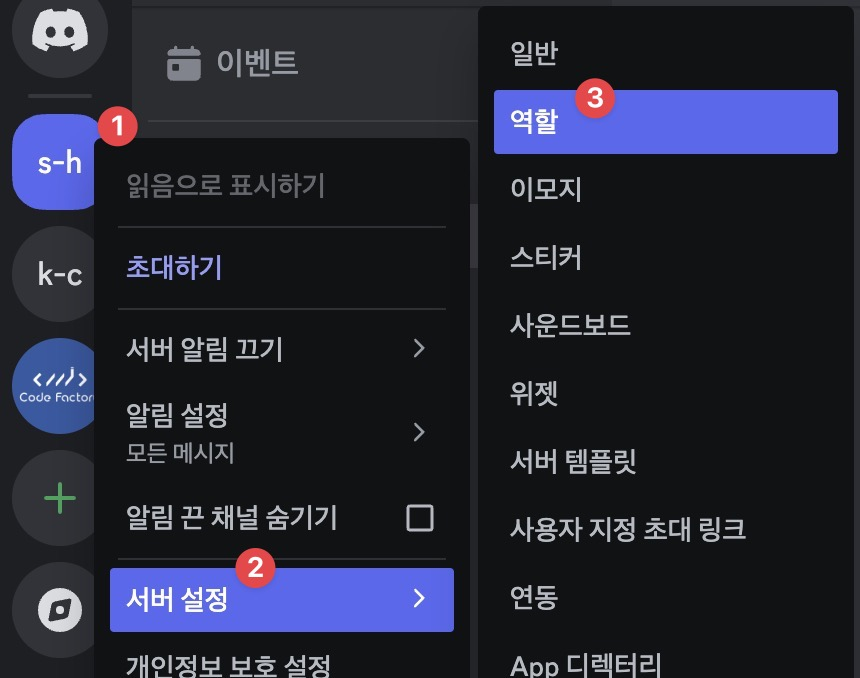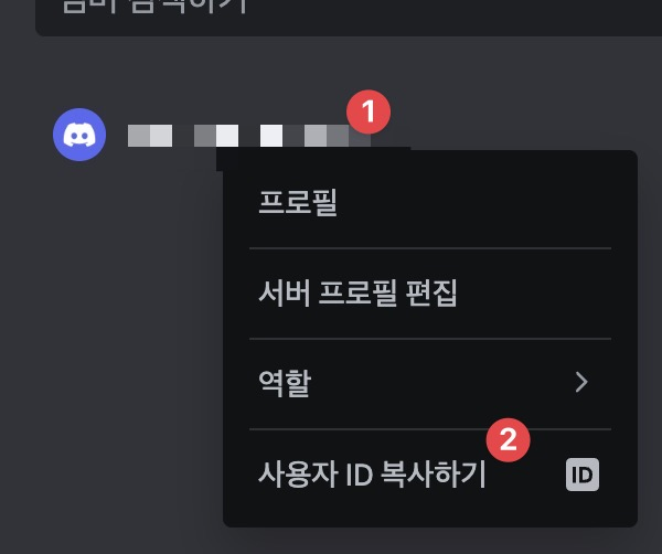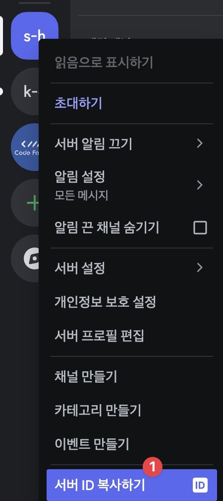 앱에 접속후, “서버추가” 뒤에 해당 서버에서 오른쪽 마우스눌러 “서버ID 복사하기”