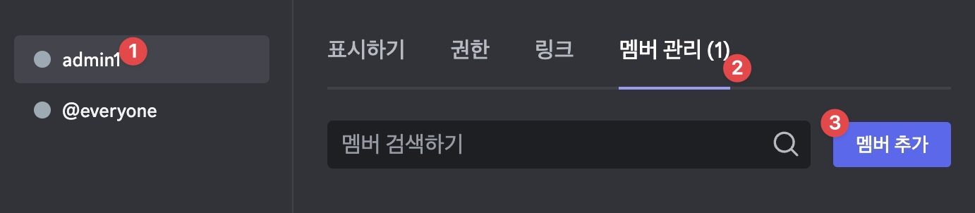 만든 역할에 맴버를 추가합니다. 필자는 개인이 사용할 예정이므로 멤버는 1명~