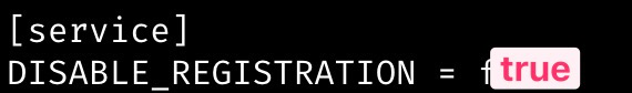 - GITEA__service__DISABLE_REGISTRATION=true