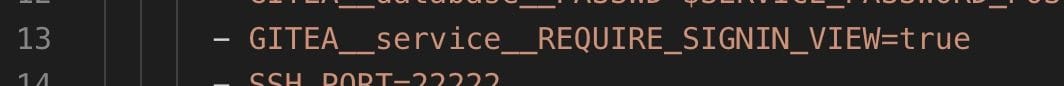 GITEA__service__REQUIRE_SIGNIN_VIEW=true를 추가합니다.
