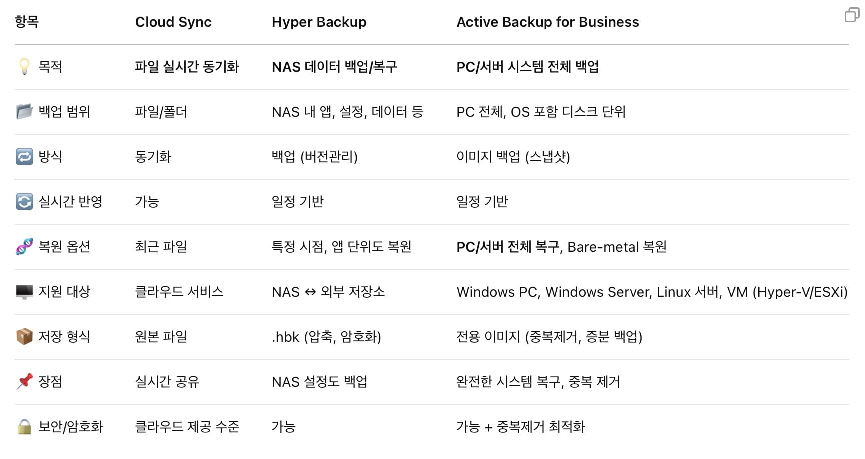 시놀로지에는 여러가지 백업 기술? 이 있다. 아래에 핵심 정리를 해본다