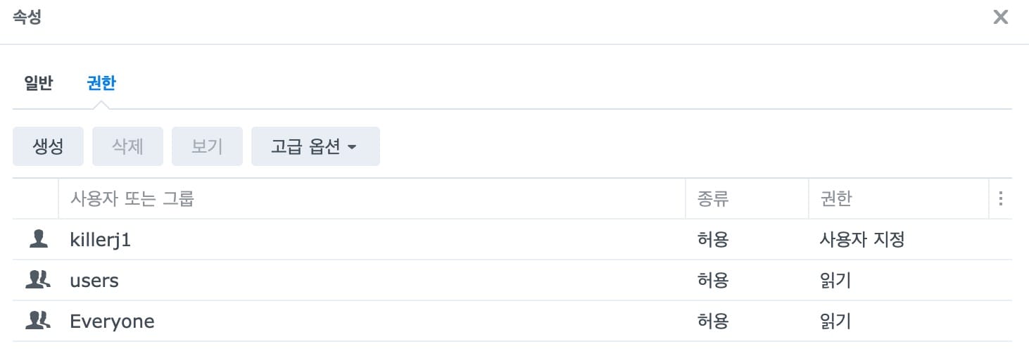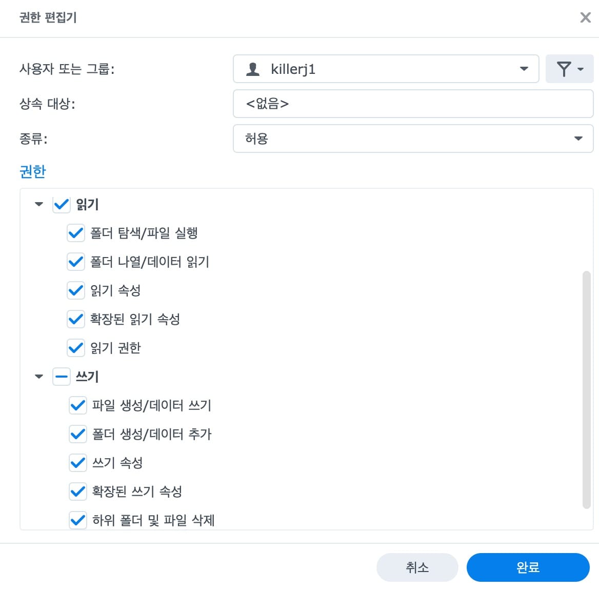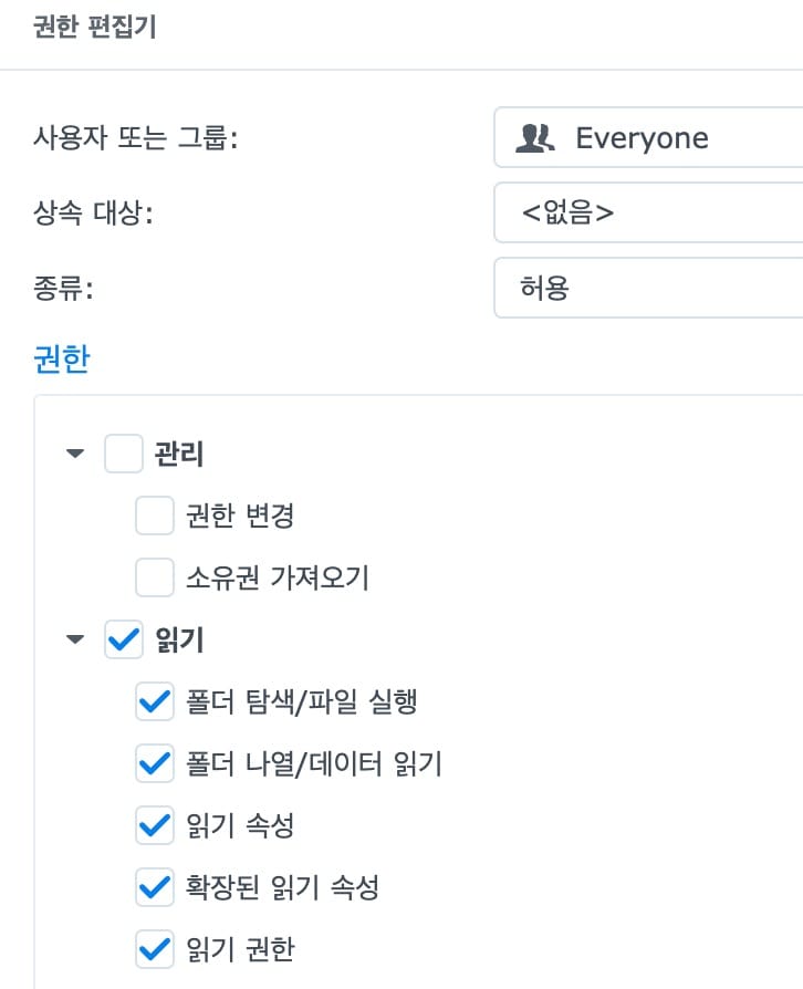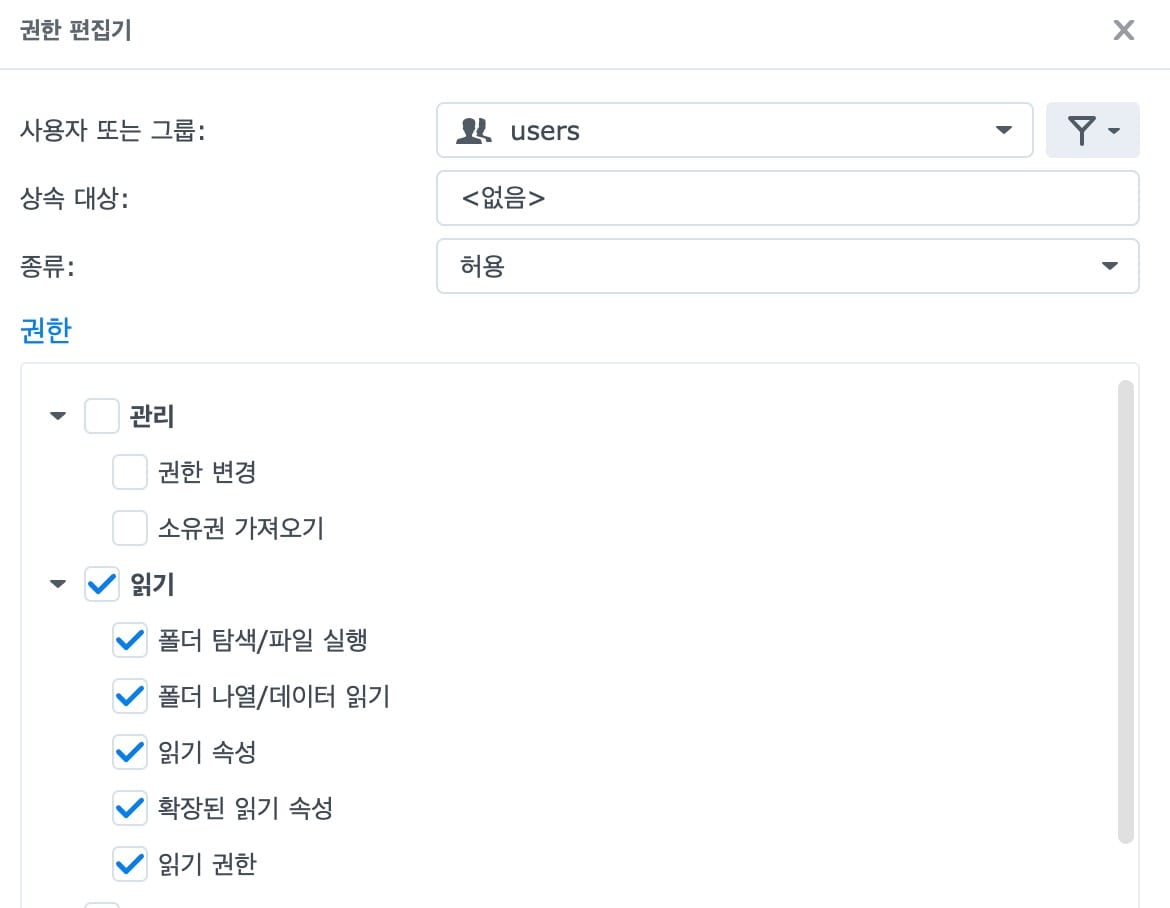 filestation에서 chmod 755 와 같은 권한으로 변경하기