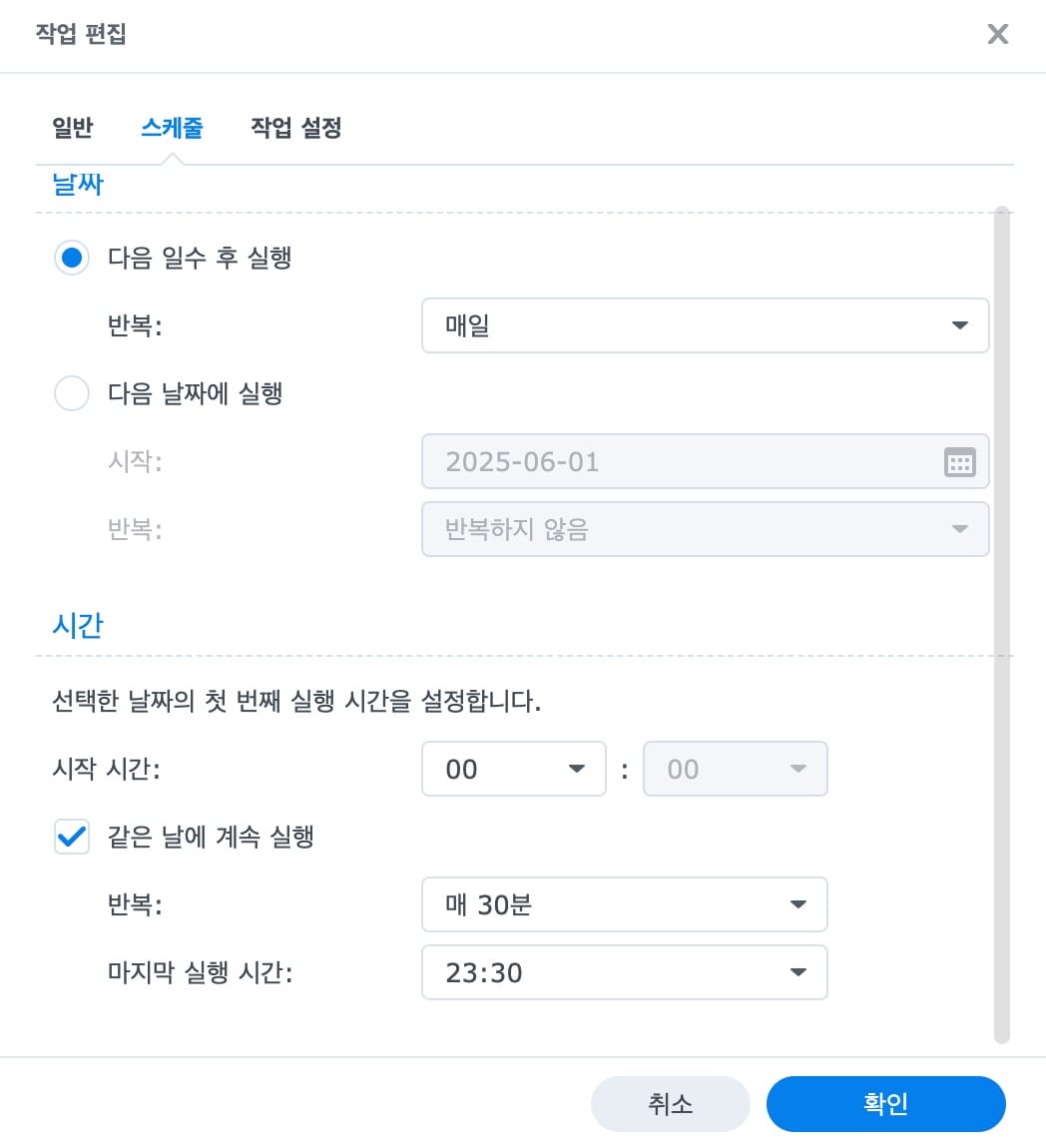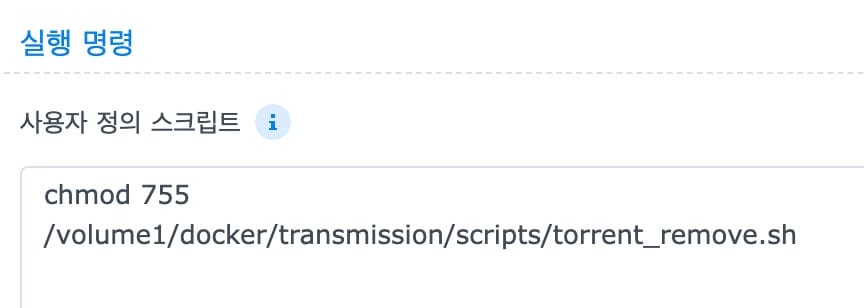 chmod 755 [실행하고 싶은 파일의 위치+파일이름+확장자]확인하고 시놀로지 암호 넣고 [실행]